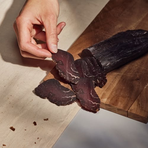 Mit jedem Bissen unseres Trockenfleisches geniesst du nicht nur pure Qualität, sondern unterstützt auch faire Landwirtschaft. Und eins versprechen wir dir: Du wirst den Unterschied schmecken. Vorsicht: Wiederbestellungsgefahr!