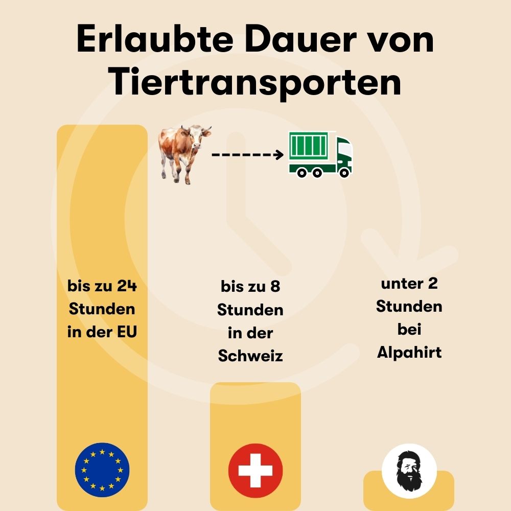 - In der EU können Tiertransporte bis zu 24 Stunden dauern.