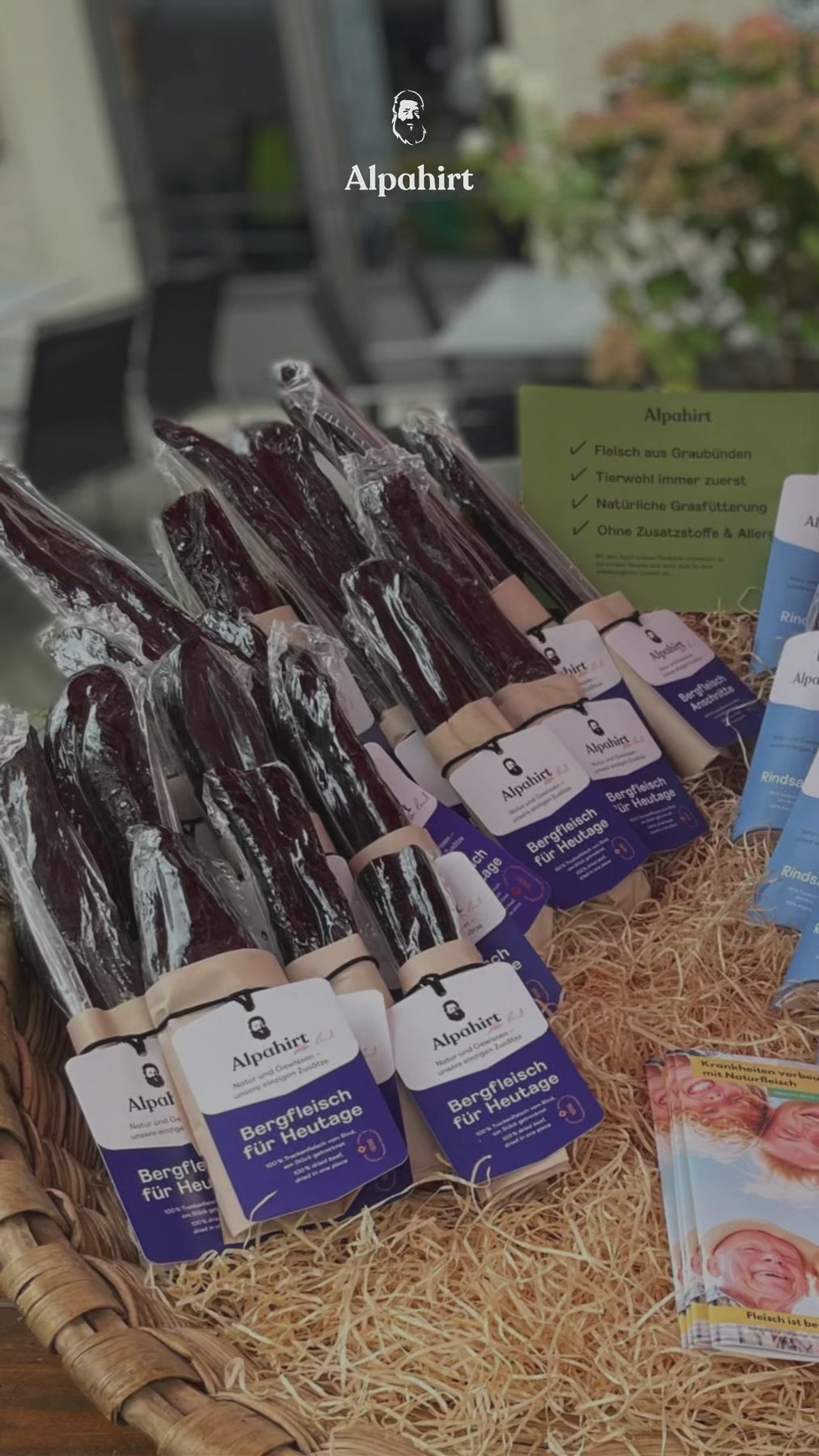 Das Bergfleisch für Heutage ist eine exquisite Delikatesse, die durch ihre schonende Lufttrocknung und sorgfältige Herstellung besticht. Hergestellt aus 100 % Rindfleisch, repräsentiert dieses Trockenfleisch die hohe Kunst der Fleischveredelung. Jedes Stück Bergfleisch ist ein Beweis für Alpahirts Engagement für Qualität und Tradition, wobei das Fleisch von durchschnittlich 10 Jahre alten Kühen stammt, die ein natürliches Leben auf den Bündner Alpen geniessen durften.