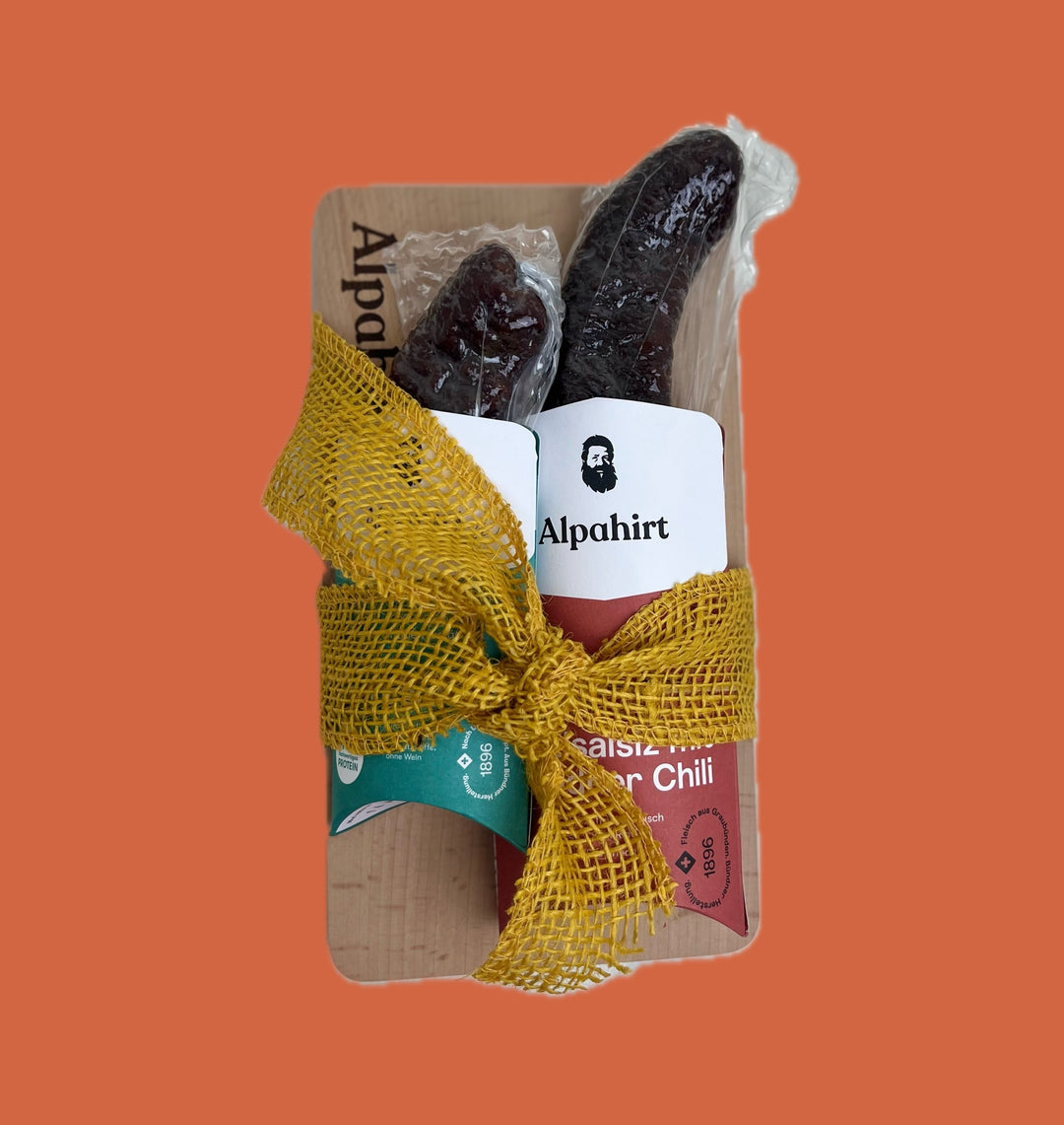 Für Geschäftskunden bieten wir Geschenksets in unterschiedlichen Preisklassen an – du kannst diese ganz individuell zusammenstellen. Du kannst aus unseren naturbelassenen Fleischprodukten und verschiedenen Verpackungen wählen, um das Geschenk ideal an deine Unternehmensbedürfnisse anzupassen. Für grössere Bestellungen oder individuelle Wünsche wende dich gerne an uns unter info@alpahirt.ch.